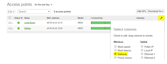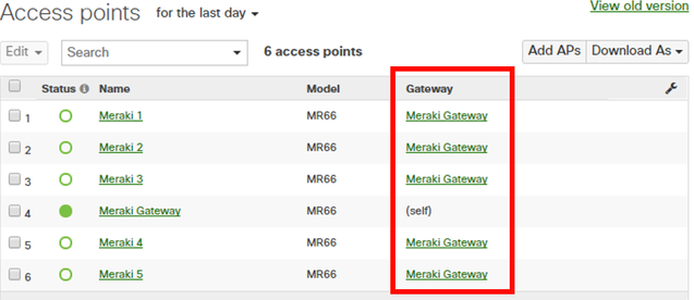 Gatewayの項目で(self)となっているAPは現在Gateway Modeとなります。